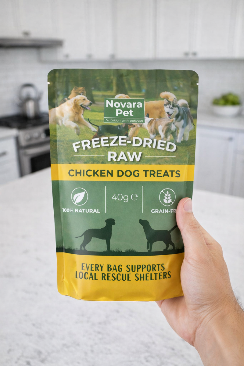 Novara Pet can be used as a daily treat, training reward, or topper alongside meals. It’s nutrient-dense and made from real ingredients, so a little goes a long way.